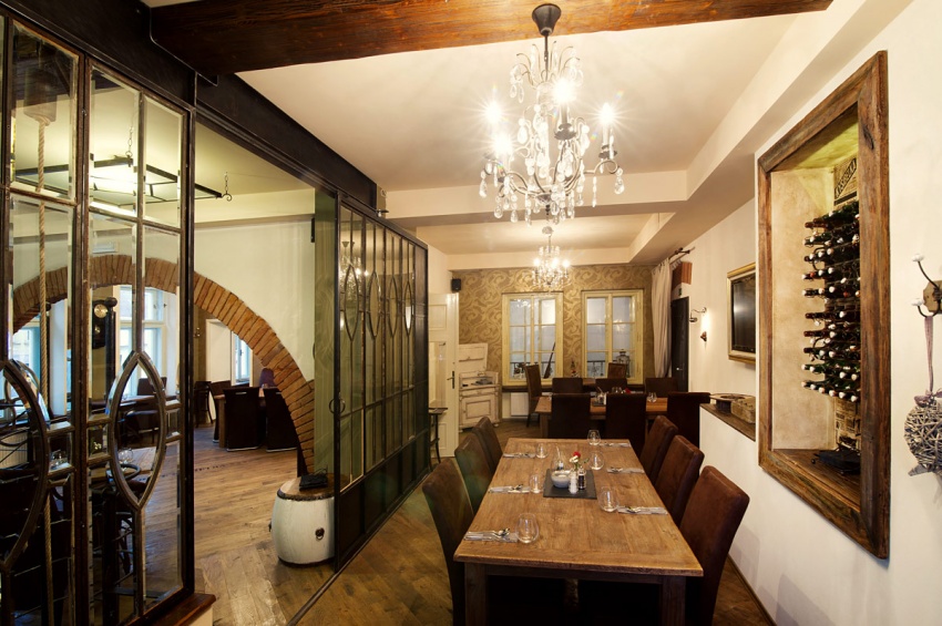 Originální interiér restaurace ve stylu klasického italského rodinného podníku....